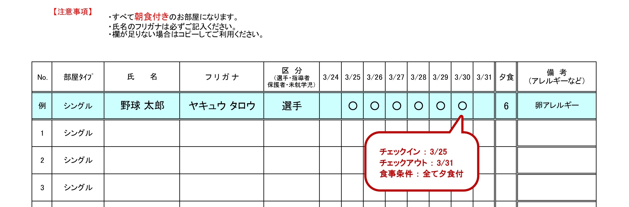 【宿泊ネームリストの記入例①】